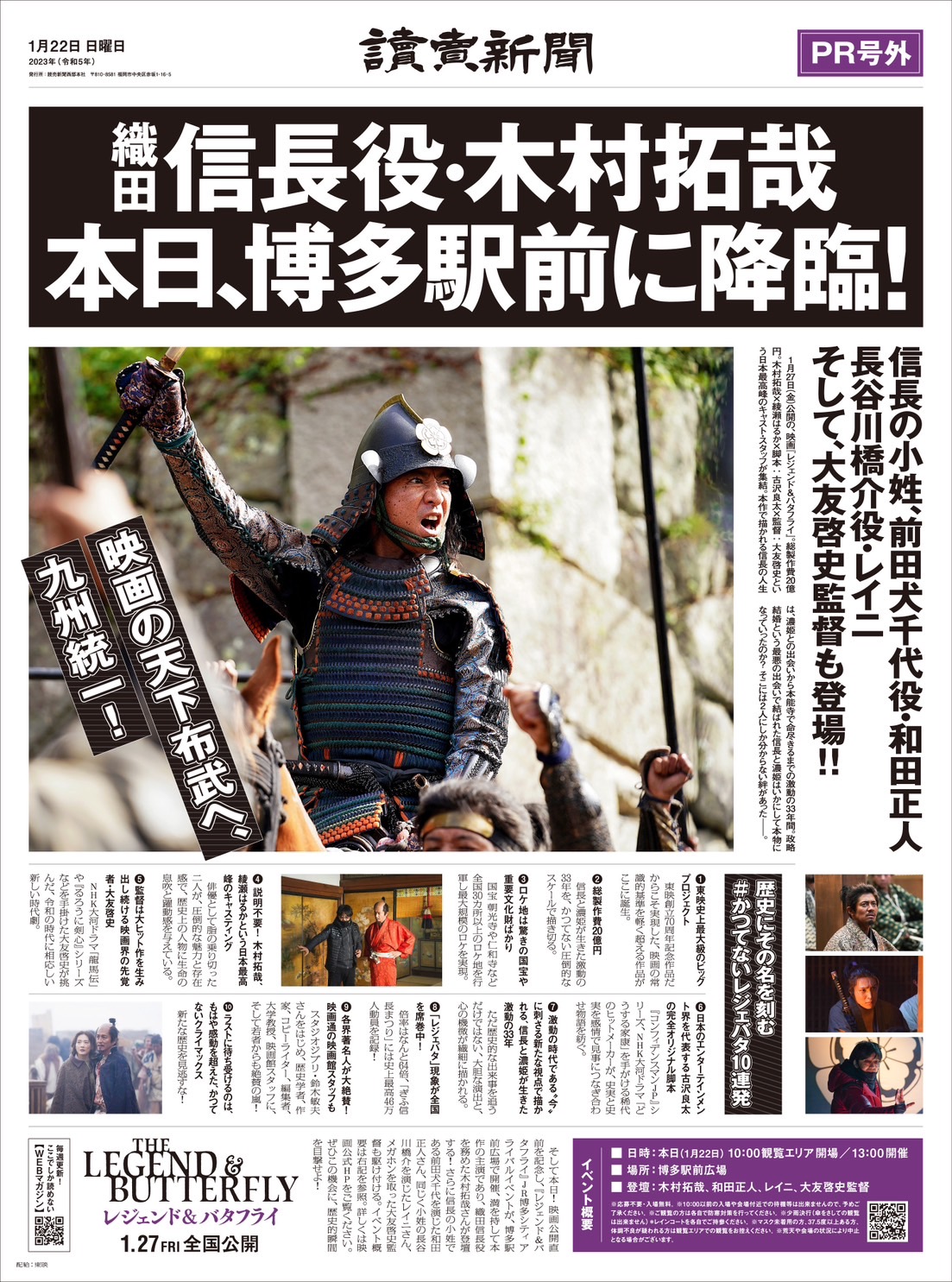 1月27日(金)公開の映画「レジェンド&バタフライ(通称:レジェバタ)」の宣伝活動で巡業されています。木村拓哉さんの登場時間と、他に登場する出演者の情報をまとめてみました。